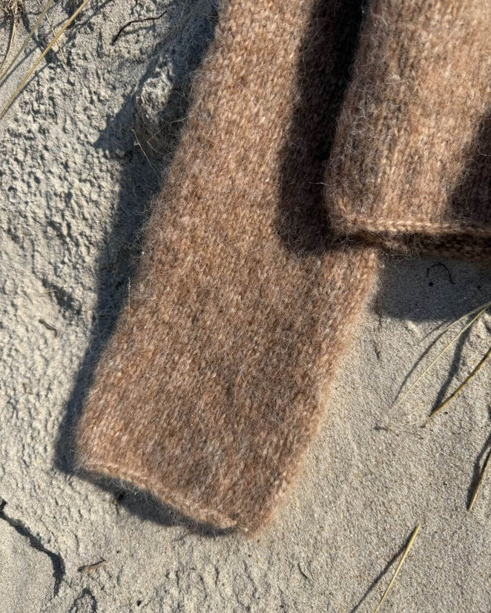 Tarvikkeet: 300 (300) 350 (350) 400 (400) 450 (450) 500 (550) g Isager Yarn Isager Soft (50 g = 125 m) tai 350 (350) 400 (400) 450 (450) 500 (500) 550 (600) g CaMaRose Snefnug (50 g = 110 m) tai Sandnes Garn Poppy (50 g = 110 m)